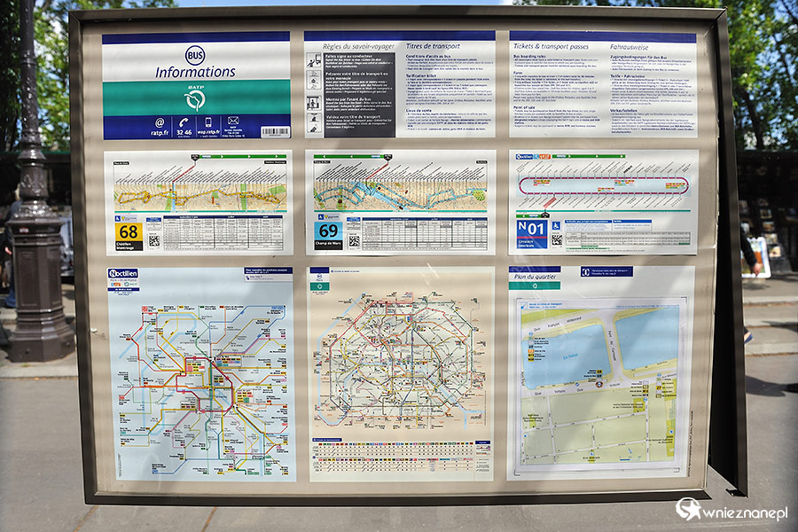 Paryż. Rozkłady jazdy, mapki i wszystkie niezbędne informacje znajdują się na każdym przystanku komunikacji miejskiej.