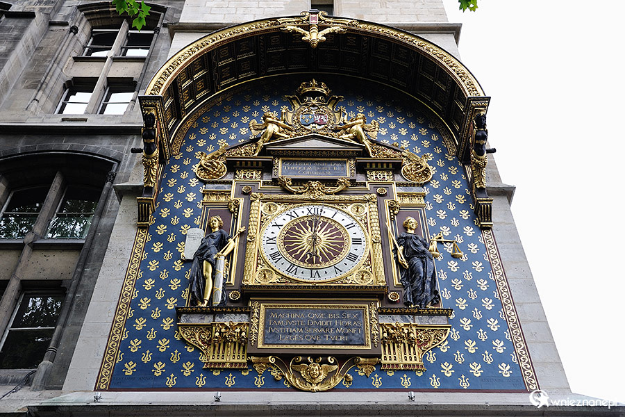 Paryż. Zabytkowy zegar na zewnętrznej ścianie Conciergerie.