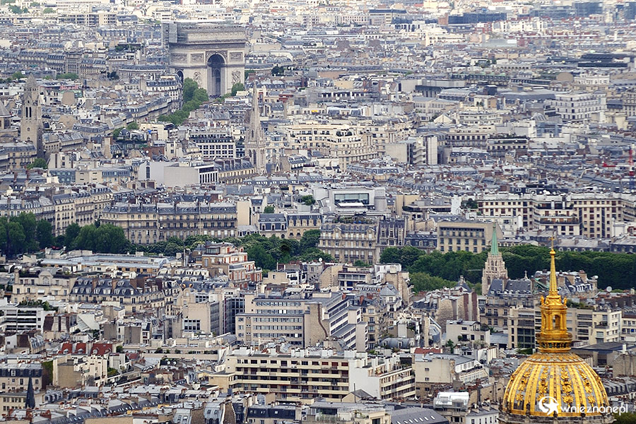 Paryż. Panorama Paryża, na górze z lewej Łuk Triumfalny.