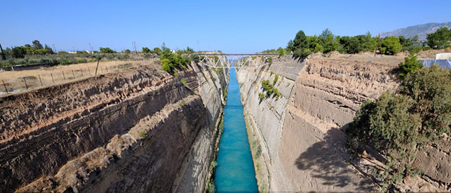 Godzina jazdy szeroką autostradą kosztowała nas 3,20 euro, ale czas dotarcia do Kanału Korynckiego rekompensował wydatek. Przed samym kanałem stoi znak informujący, że trzeba zjechać w tym miejscu z autostrady, by dotrzeć do punktu widokowego. Co ciekawe, gdyby nie znaki i stragany, w ogóle można by nie zauważyć, że przejeżdża się mostem.