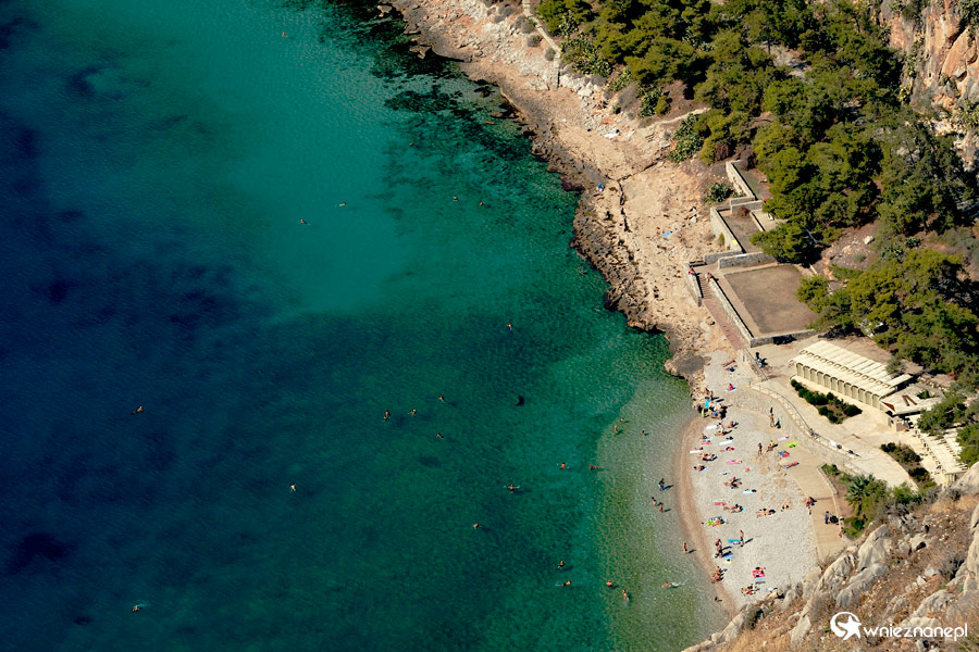 Peloponez. Mała plaża w Nafplio widziana z twierdzy Palamidi.