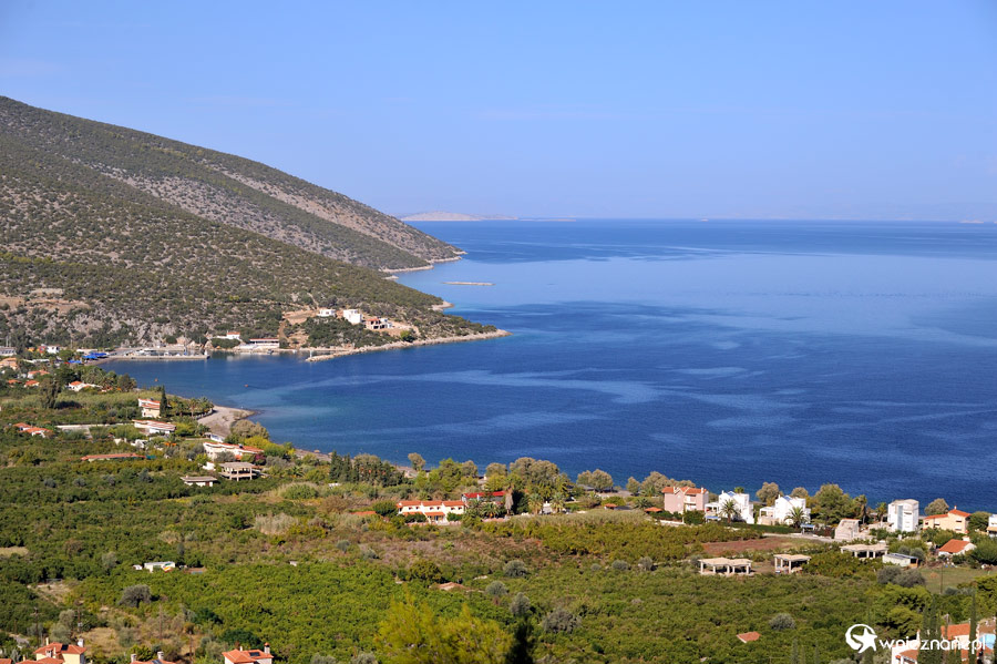 Peloponez. Widok na góry i morze w okolicy Neas Epidavros.