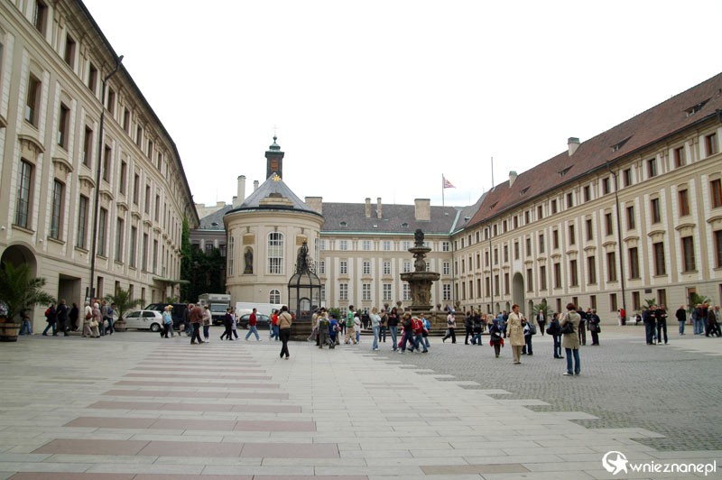 Zamek na Hradczanach. Drugi dziedziniec zamkowy z fontanną pośrodku.