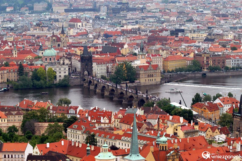 Most Karola i panorama Pragi widziane z wieży w Katedrze Św. Wita, Wacława i Wojciecha na Hradczanach. - foto: wnieznane.pl
