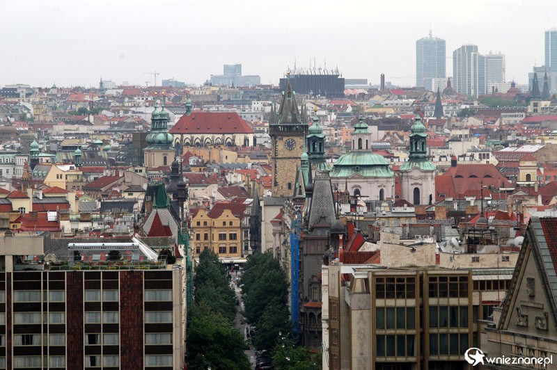 Panorama miasta ze wzgórza, na którym znajduje się praski metronom.