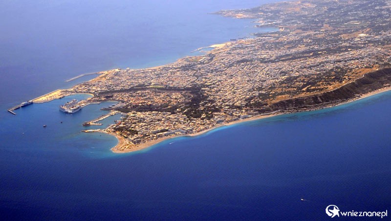 Wyspa Rodos. Widok na stolicę wyspy Rods z samolotu podchodzącego do lądowania.