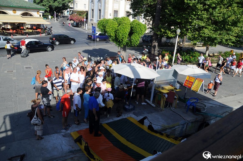 Miasto Rodos, port Mandraki. Długa kolejka oczekujących na wejście na statek wycieczkowy, płynący z Rodos na wyspę Symi.