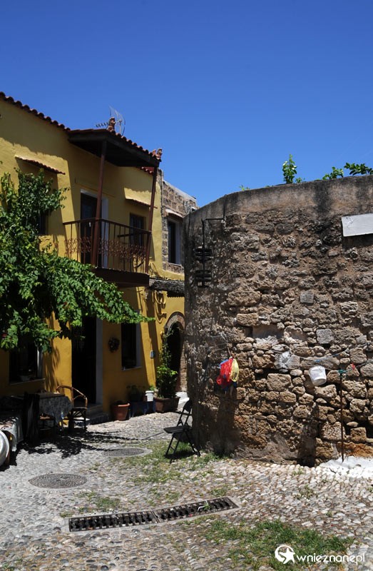 Wyspa Rodos. Wąskie uliczki i domy mieszkalne w stolicy wyspy Rodos.