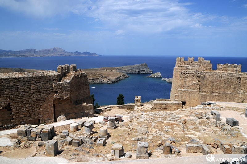 Wyspa Rodos. Ruiny starożytnego Akropolu w zabytkowym mieście Lindos.
