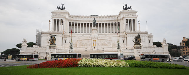 Kolejnego dnia z samego rana wybraliśmy się zwiedzać Koloseum. Jako że było jeszcze wcześnie, postanowiliśmy zobaczyć znajdujący się niedaleko plac - Piazza Venezia. Przy placu znajduje się ogromny biały pomnik króla Vittorio Emanuele II. Wcześnie rano w okolicach pomnika i Kapitolu nie było zbyt wielu turystów, chociaż w późniejszych godzinach robi się tam naprawdę tłoczno.