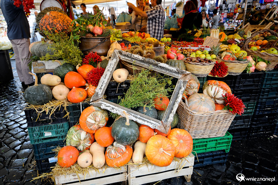 Rzym. Stoisko z owocami i warzywami na placu Campo de' Fiori.    - foto: wnieznane.pl