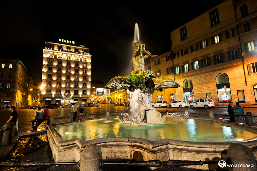 Rzym. Fontana del Tritone na środku słynnego placu Piazza Barberini.