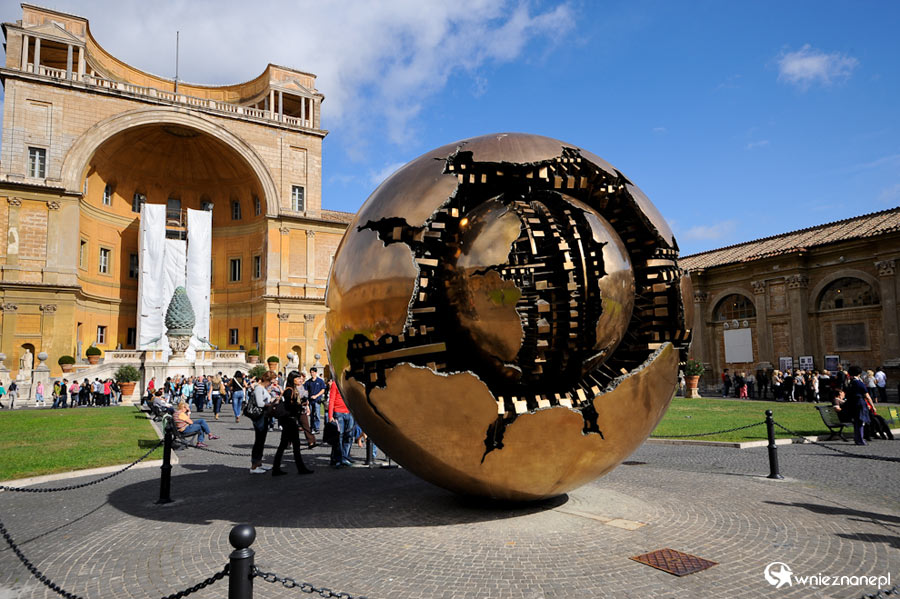 Watykan. Złota kula na Cortile della Pigna (Dziedzińcu Pinii) na terenie Muzeów Watykańskich.