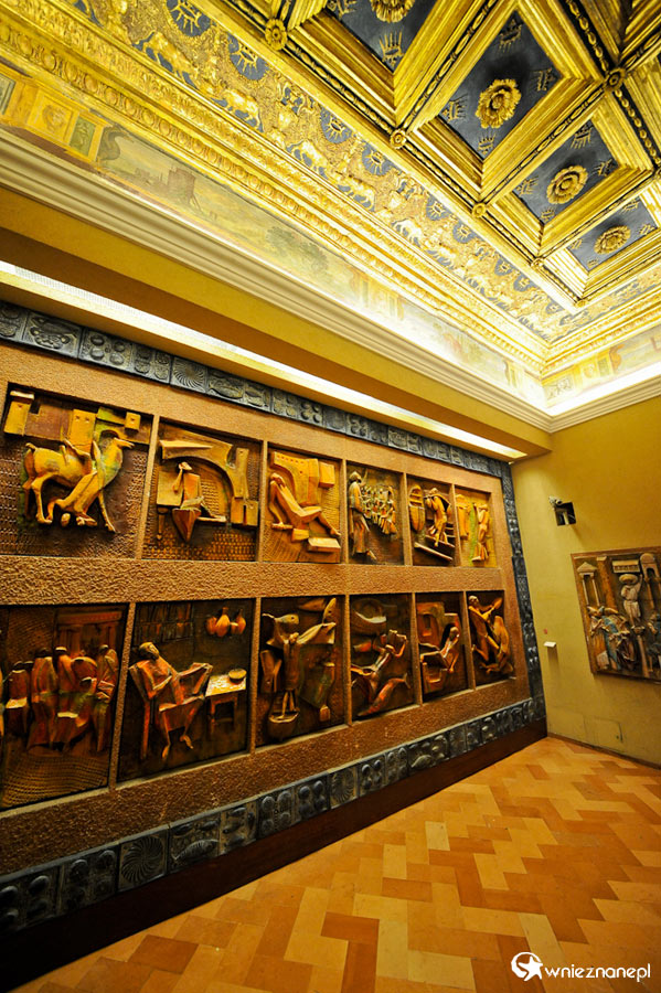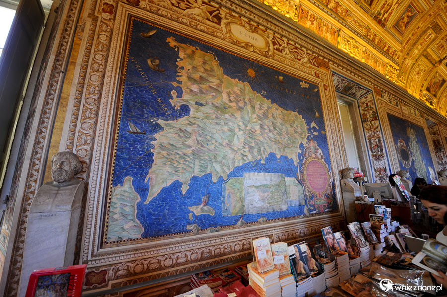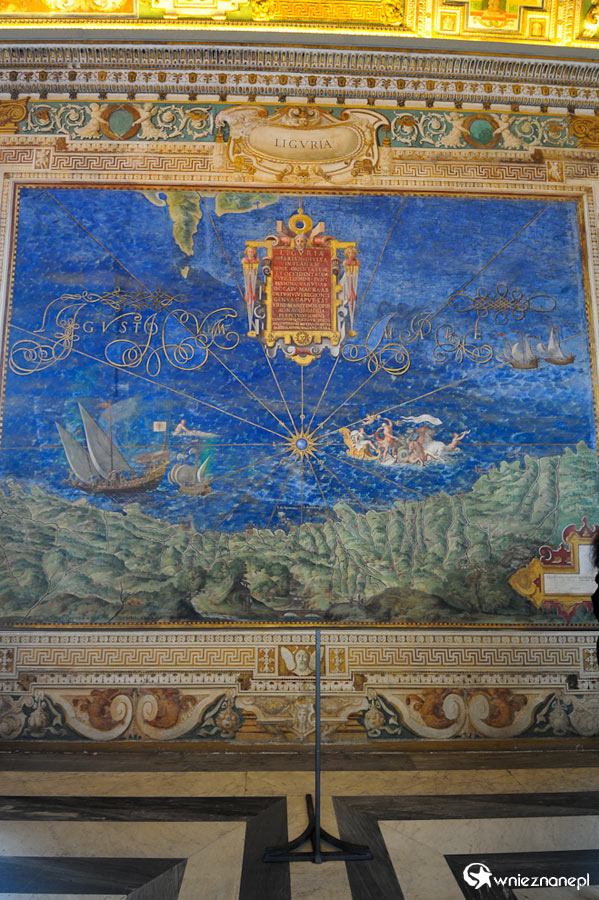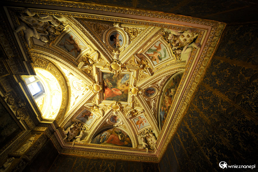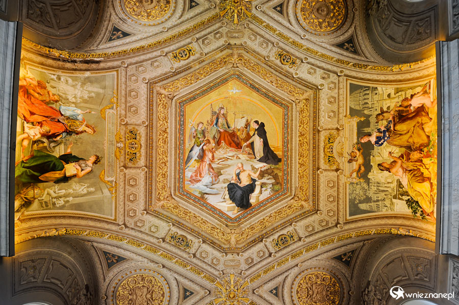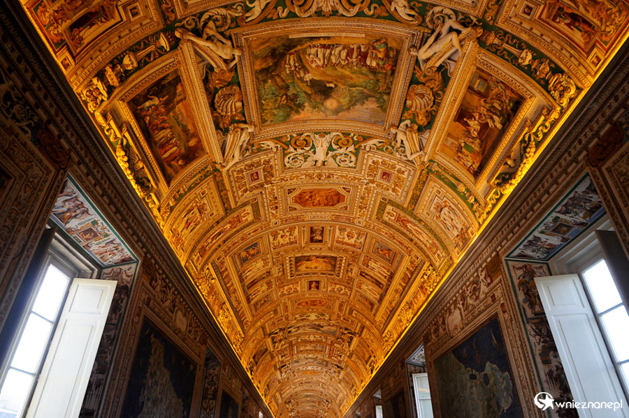 Watykan. Bogato zdobione sklepienie w muzeach watykańskich, w Galerii map..