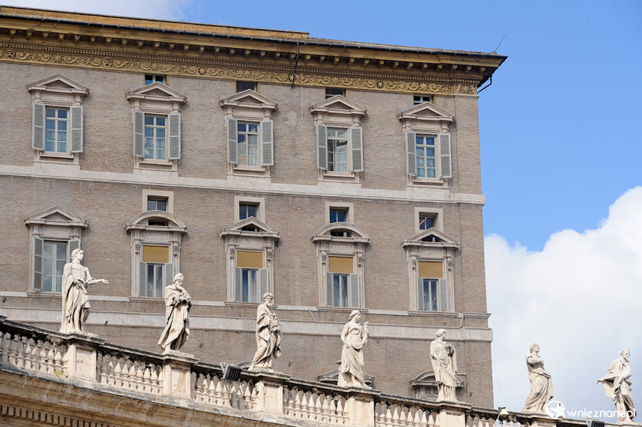 Watykan. Posągi świętych na kolumnadzie i budynek w Watykanie.