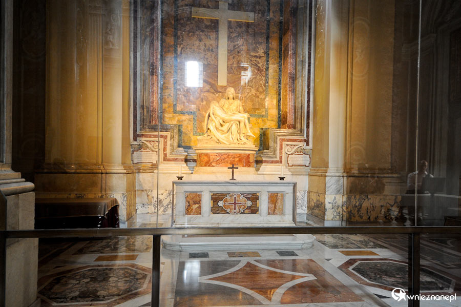 Watykan. Przepiękne wnętrze Bazyliki św. Piotra w Watykanie. Jedno z najbardziej znanych dzieł na świecie - Pieta Michała Anioła.  - foto: wnieznane.pl