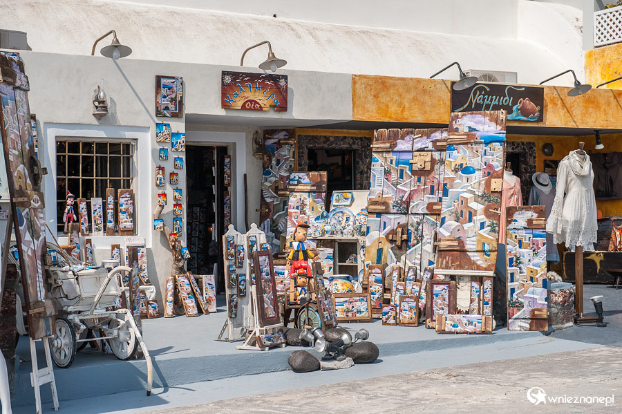 Santorini, Oia. Piękne obrazy z Santorini malowane na drewnie.