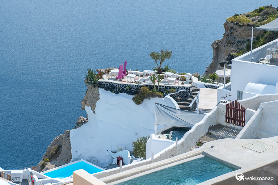 Santorini, Oia. W ekskluzywnych hotelach nawet skały muszą być białe...