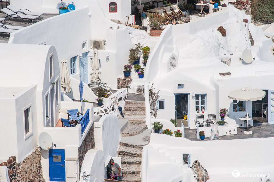Santorini. Oia słynie z wykutych w skale hoteli w stylu cykladzkim. - foto: wnieznane.pl