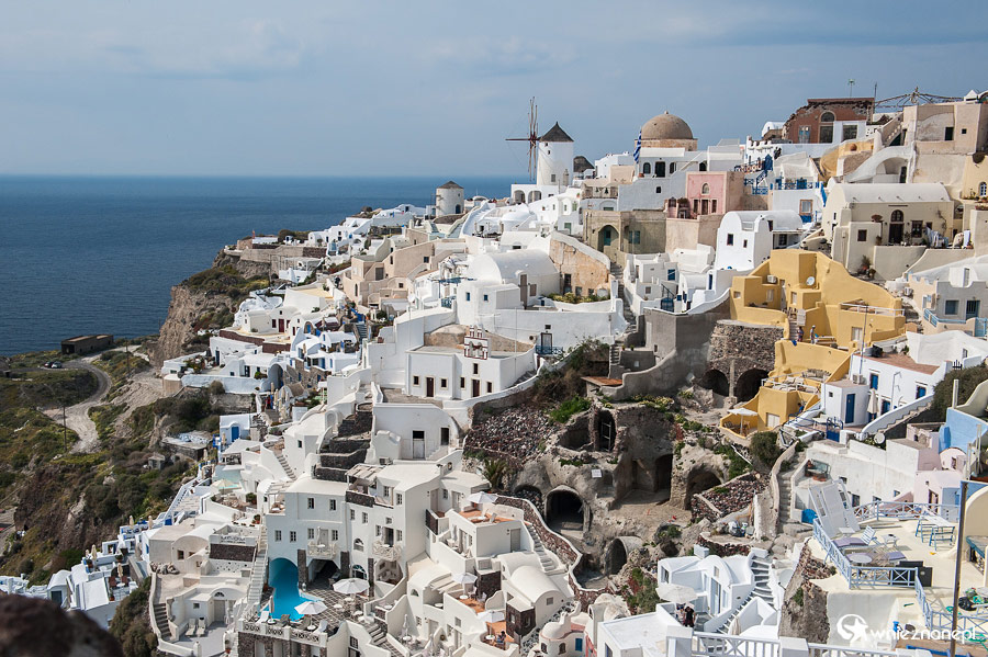 Santorini. Charakterystyczna cykladzka zabudowa w Oi.
