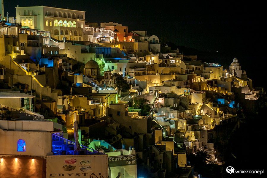 Santorini. Stolica wyspy, Fira, oświetlona nocą sprawia niesamowite wrażenie.