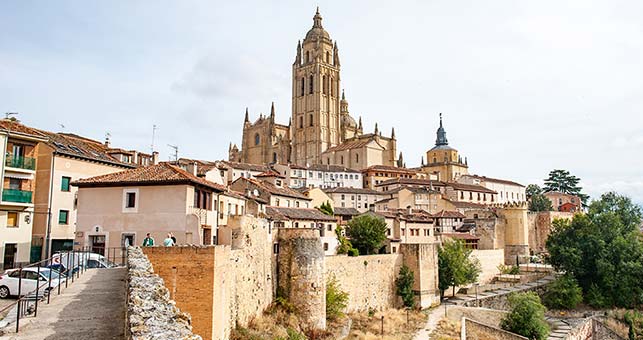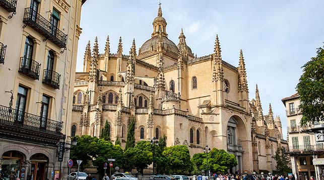 Główną atrakcją tego miejsca jest imponująca Katedra Santa Iglesia de Nuestra Senora de la Asuncion y de San Frutos. Nazywana jest "Damą Katedr" i rzeczywiście, prezentuje się pięknie. Wspaniałe jest także wnętrze budowli, które można obejrzeć za kilka euro. Zachwycają liczne kaplice, bogato ozdobione malowidłami, obrazami, rzeźbami. Najpiękniejsza jest Kaplica Przenajświętszego Sakramentu, do której wchodzi się przez drzwi z boku. Katedra posiada wieżę, z której rozpościera się widok na Alcazar i miasto. Wstęp jest płatny i tylko z przewodnikiem o określonych godzinach.