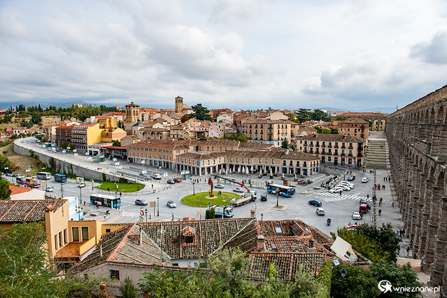 Segowia. Rzut okiem na miasto i akwedukt z tarasu widokowego.