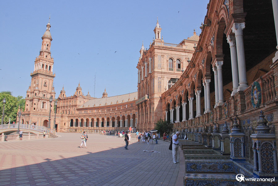Sewilla Budynek na placu Hiszpańskim cieszy się zainteresowaniem zwiedzających.