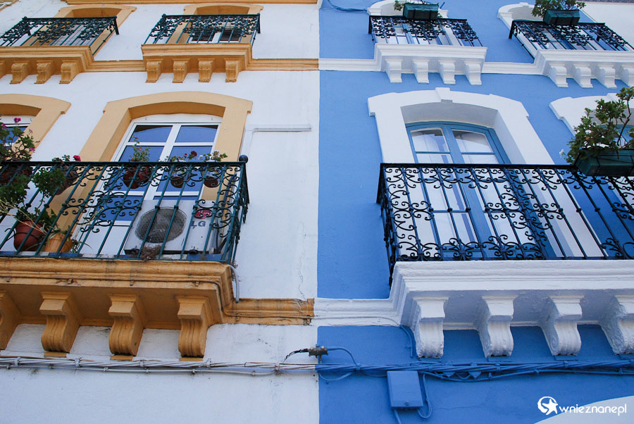 Sewilla. Kontrastujące ze sobą kolory kamienic na calle Betis.