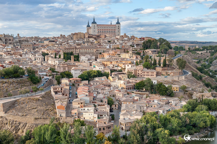 Toledo. Historyczne centrum miasta położone jest na wzgórzach i ograniczone kanionem, w którym płynie rzeka Tajo (Tag).