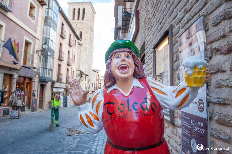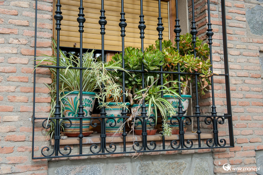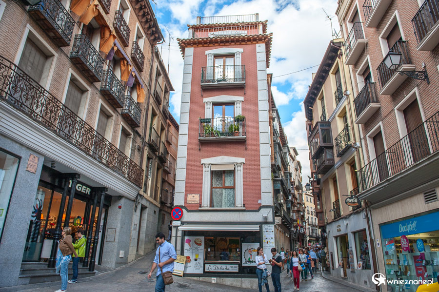 Toledo. Jeden z hoteli w zabytkowej części miasta. Z lewej strony na ścianie gigantyczny termometr.