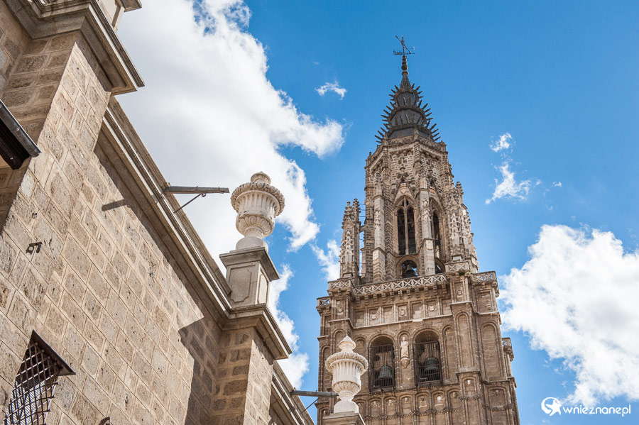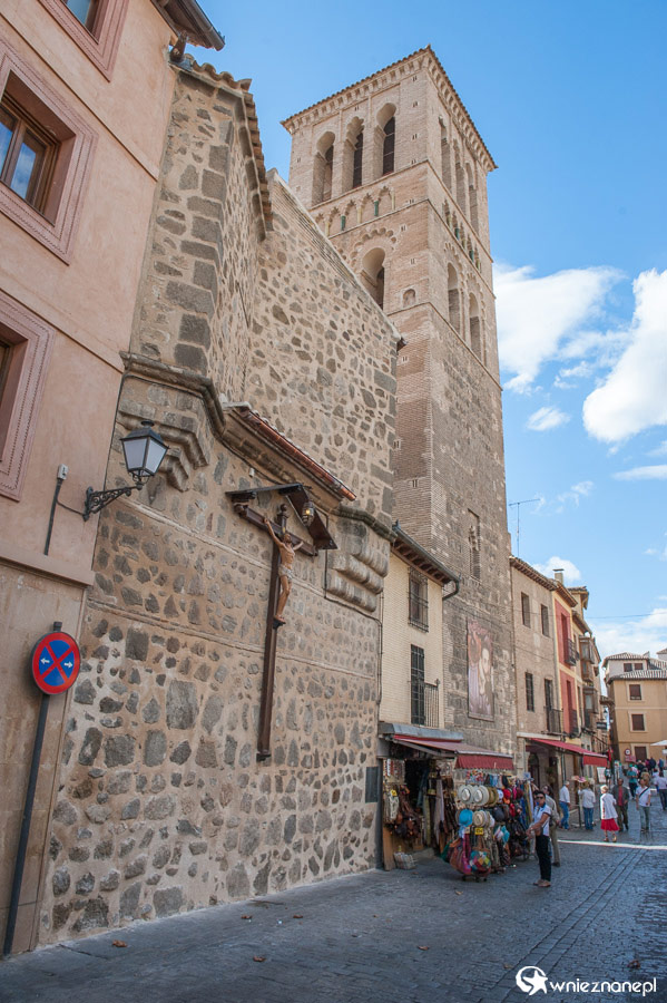 Toledo. Niepozorna fasada i wysoka wieża kościelna - Iglesia de Santo Tome.