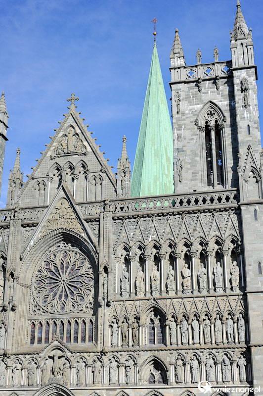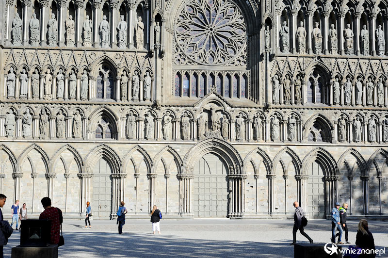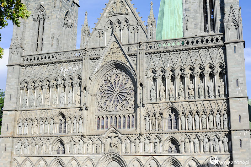 Trondheim. Piękna frontowa elewacja katedry Nidaros.