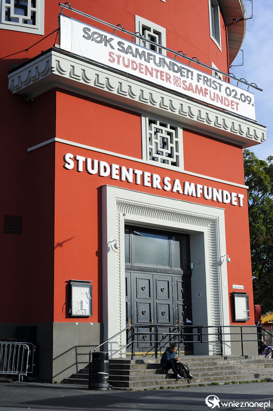 Trondheim. Charakterystyczny czerwony budynek kampusu uniwersyteckiego.