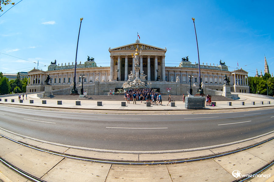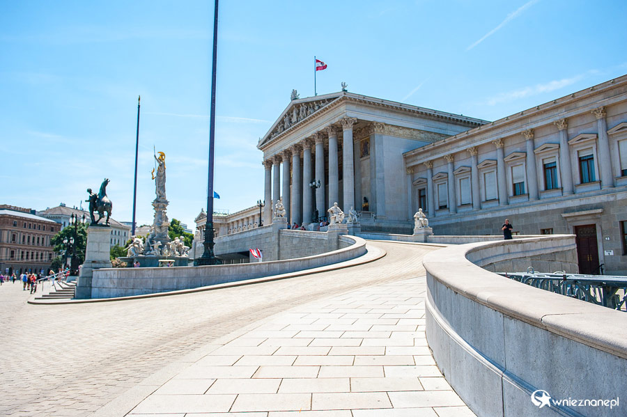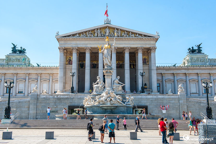 Wiedeń. Budynek Parlamentu i fontanna Pallas Atena.