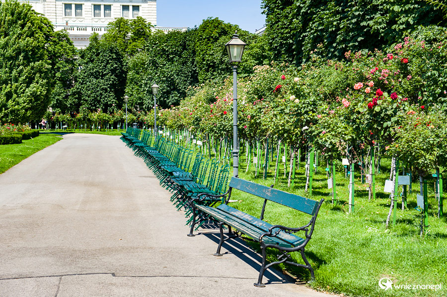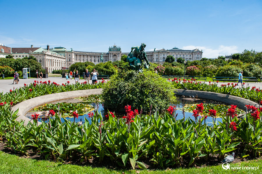Wiedeń. Ogrody miejskie przy Ringu. W tle teatr Burg.