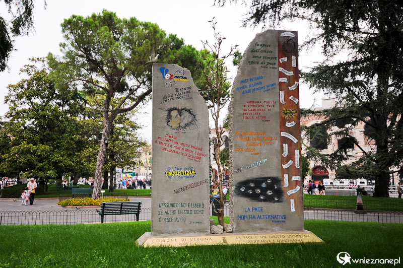 Werona. Pomnik stojący przy Piazza Bra - głównym i największym placu w mieście.