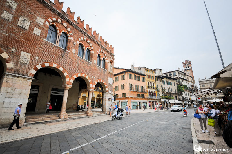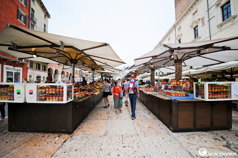 Werona. Piazza delle Erbe (Plac Ziół), wyłożony marmurowymi płytami. Tutaj codziennie odbywa się targ owocowo-warzywny.