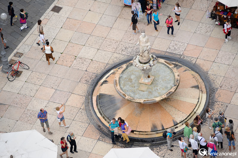 Werona. Widok z Torre dei Lamberti na Piazza delle Erbe i fontannę Madonna Verona.