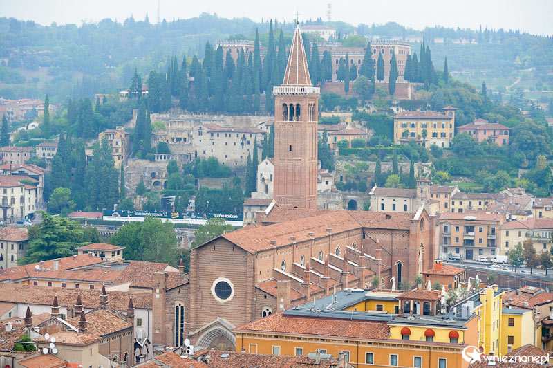 Werona. Widok z Torre dei Lamberti na miasto i Chiesa di Santa Anastasia.