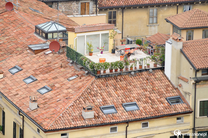 Werona. Widok z Torre dei Lamberti na ogród na dachu.