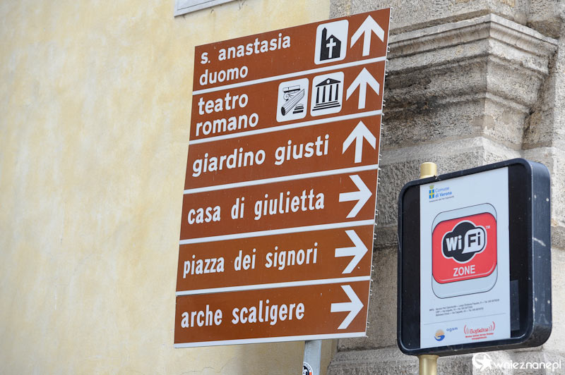 Werona. Stojące na każdym kroku tablice informacyjne nie pozwalają się zgubić w mieście.