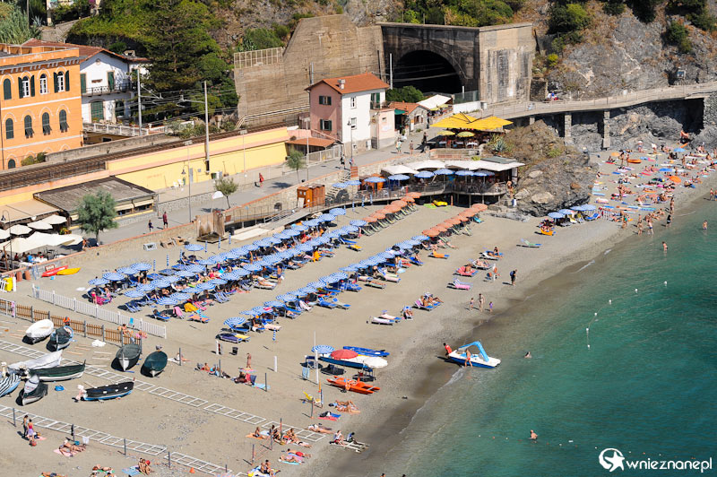 Cinque Terre. Widok na Morze Śródziemne i plażę w Monterosso z góry.   - foto: wnieznane.pl