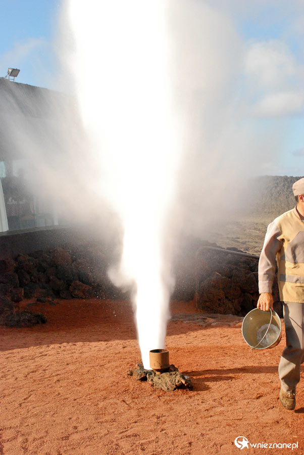 Wyspy Kanaryjskie: Woda wlana w rurę w Parku Timanfaya wybucha niczym gejzer