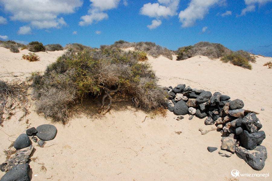Wyspy Kanaryjskie: Osłona przed wiatrem zbudowana przez plażowiczów na wyspie La Graciosa