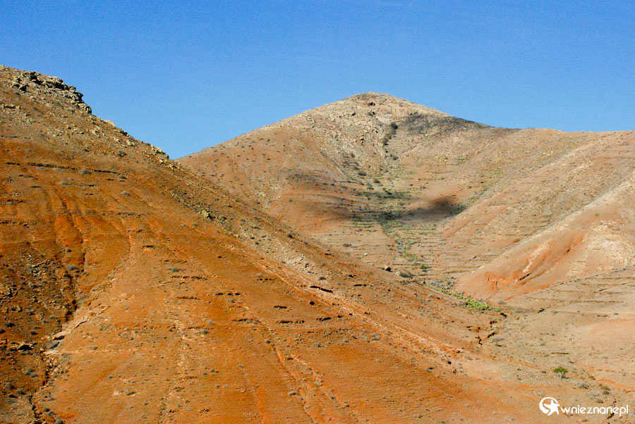 Wyspy Kanaryjskie: Wyjałowione zbocze góry na wyspie Fuertaventura