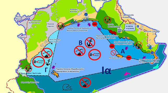 - Plaże Zatoki Laganas i Zatoki Gerakas (m.in. Laganas, Sekania, Dafni, Gerakas) zamknięte są dla turystów od zachodu do wschodu słońca.