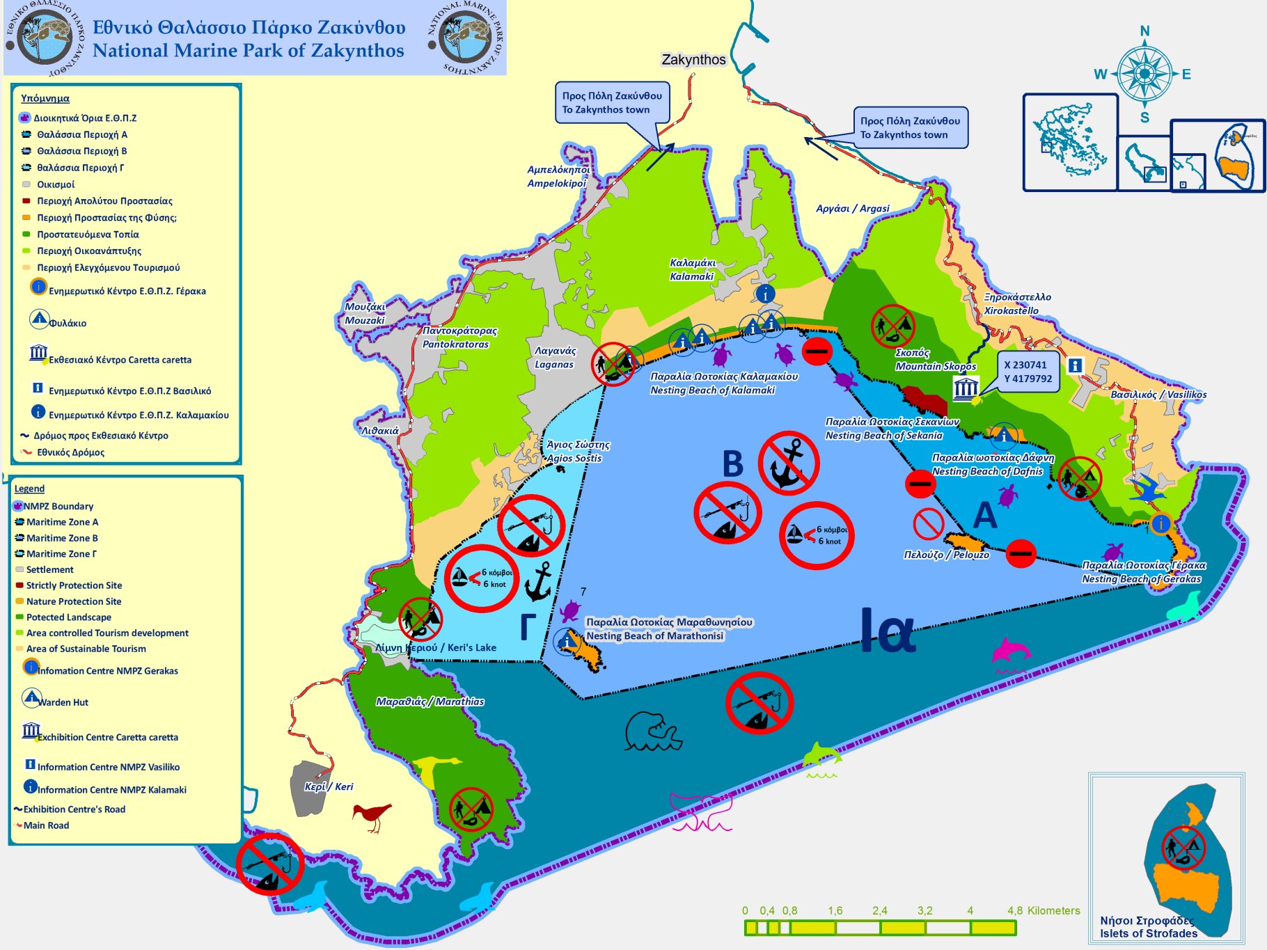 W 1999 r. na Zakynthos powstał pierwszy park morski w Grecji (National Marine Park of Zakynthos), którego celem jest ochrona fauny i flory, w tym także naturalnych siedlisk żółwi. Setki wolontariuszy poświęcają swój czas, by edukować turystów, pomagać zachować w stanie nienaruszonym naturalne środowisko żółwi i pilnować, by gniazda pozostały nietknięte.