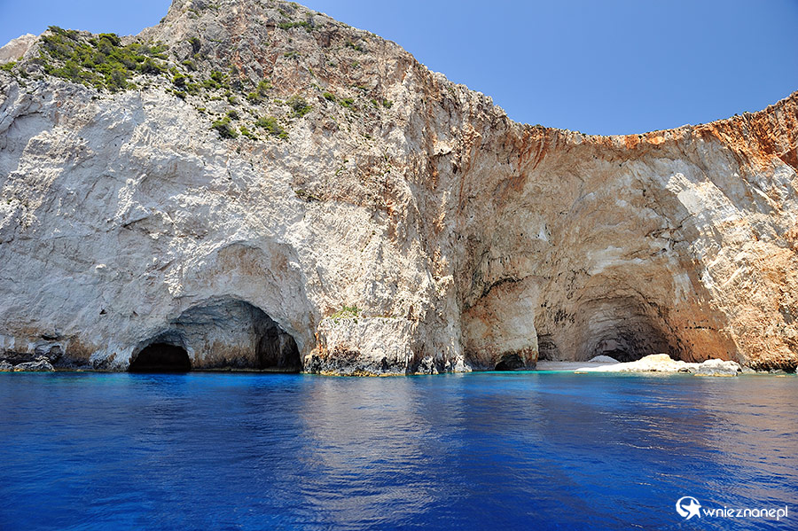 Zakynthos. Jaskinie i plaża dostępna jedynie od strony morza w okolicach Kambi Shiza.