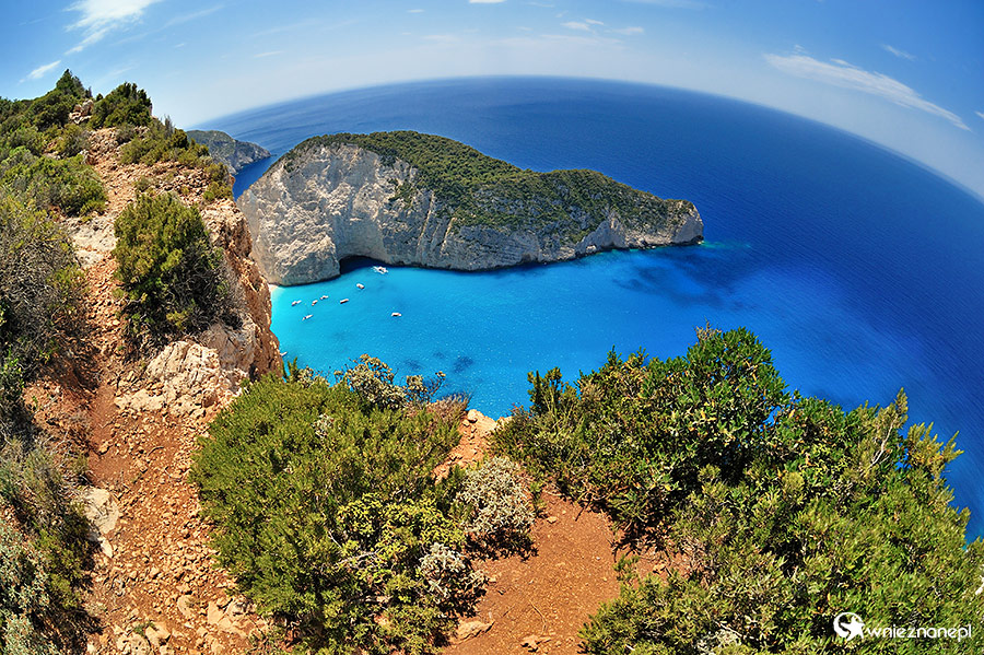 Zakynthos. Plaża i Zatoka Wraku (Navagio) widziane z klifu.